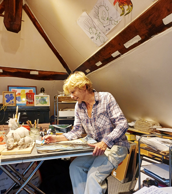 Depuis 2019 je me consacre à la peinture, les techniques mixtes, la gravure. Influencée par les Impressionnistes et la BD : Moebius, Franquin, Gotlib… et l’artiste Francis Kupka.